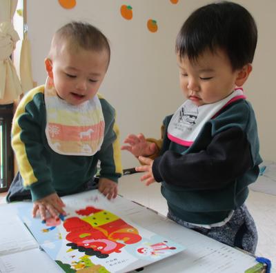 周りにいる友達に目が向き、一緒に絵本を見たり、指差しや喃語・一語文でお話したりしています♪その姿がとってもかわいく、ほほえましいです💝